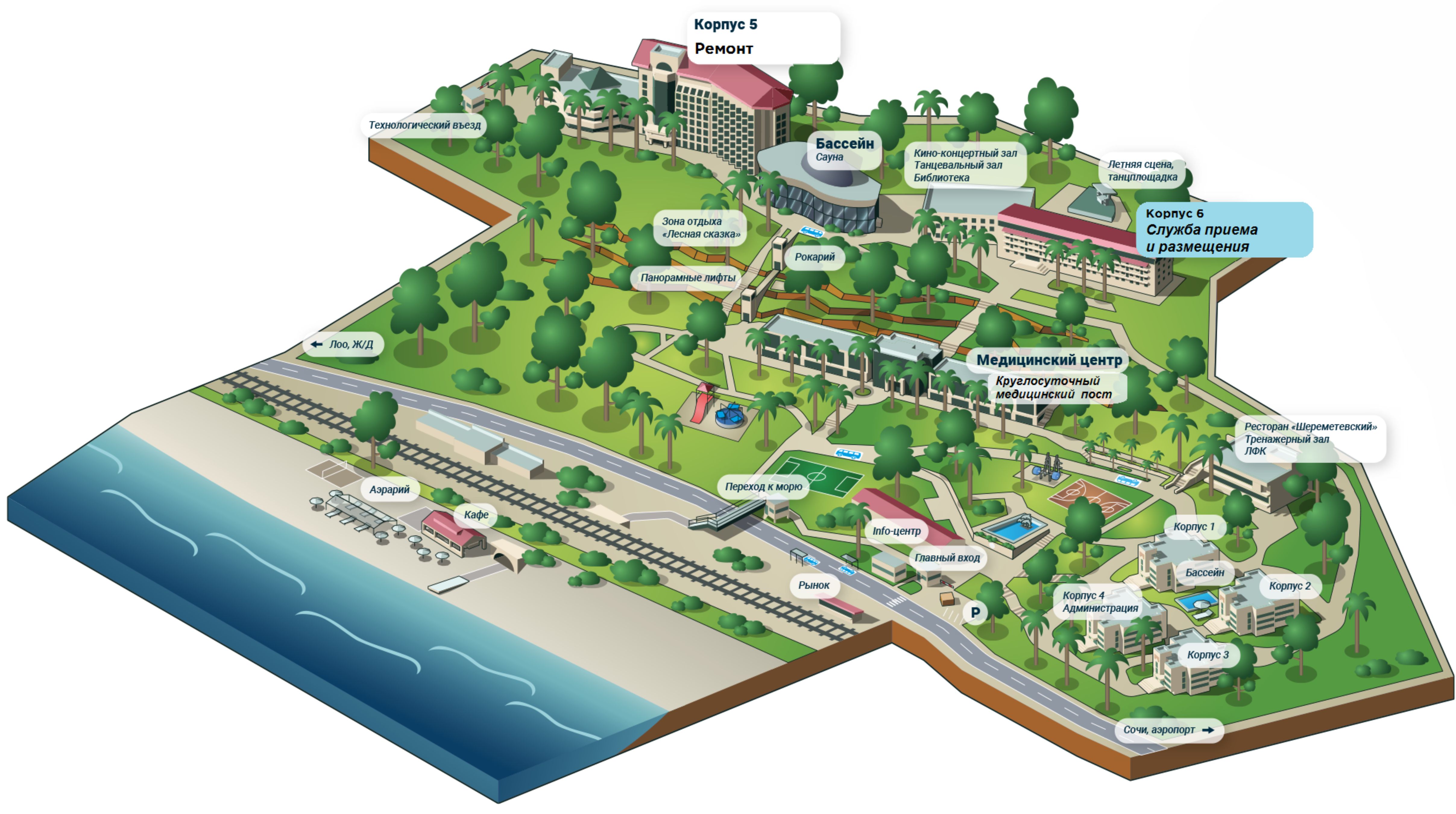 Карта санатория «Магадан» Сочии (Лоо)