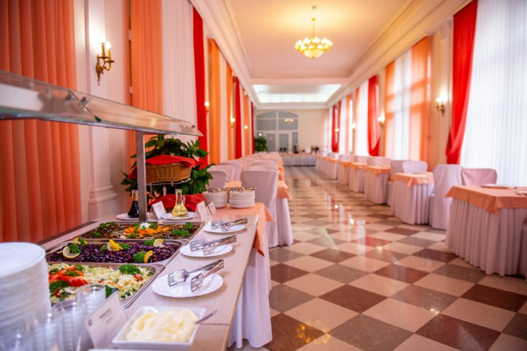В санатории «Озеро Карачи» организовано два варианта питания: «шведский стол» и «меню-заказ». Приемы пиши проходят в уютной столовой на 600 посадочных мест, находящейся в главном корпусе санатория.