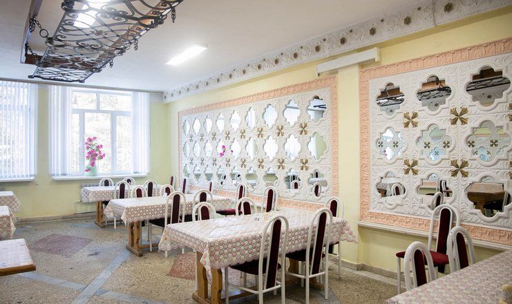 Столовая санатория находится на 2-м этаже двухэтажного корпуса и состоит из трех залов. Организовано 5-и разовое питание по системе «меню-заказ» (три основных приема пищи (завтрак, обед, ужин) и легкий полдник и вечерним приемом кефира). Бланк заказа предоставляют гостям при заезде. Системе питания санатория придается большое значение, ведь правильное и сбалансированное питание – залог успеха в общем оздоровительном процессе.